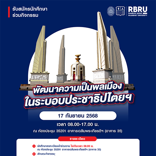 สมัคร »ตามประกาศมหาวิทยาลัยกำหนดให้นักศึกษาต้องเข้าร่วมกิจกรรมให้ครบถ้วน หากไม่ครบตามประกาศจะต้องขอบำเพ็ญประโยชน์จนครบ
